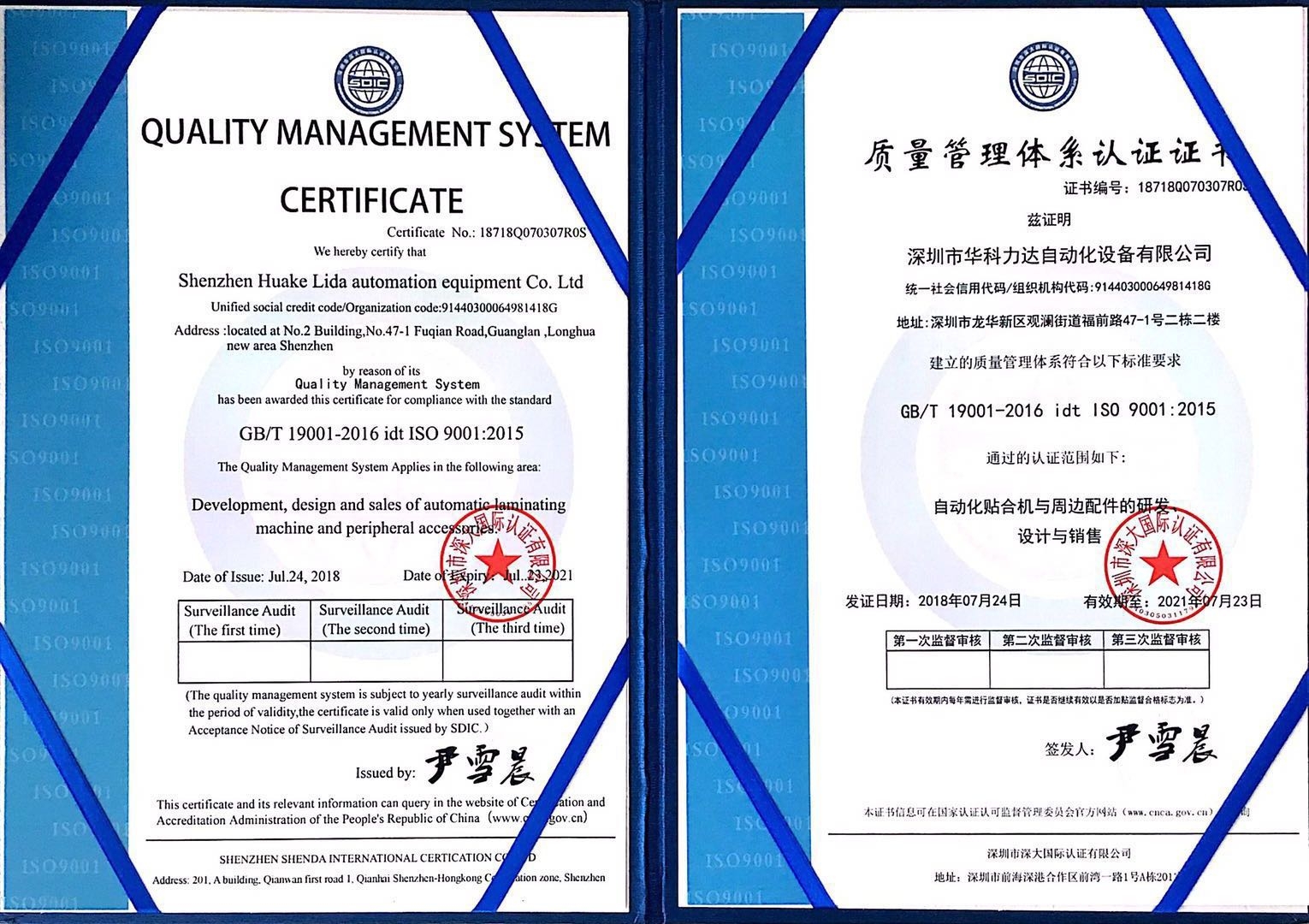 香蕉啪啪视频始(shǐ)終從節省人力出發,專注於(yú)為客戶(hù)提供整套個性化、智能化的(de)生產設備方案及完善的服務。在研發方麵,公司擁有一支具有10多年的熱壓和(hé)貼合技術研發經(jīng)驗的中(zhōng)高(gāo)級工程師隊(duì)伍。從每台設備的(de)外觀和功能的設(shè)計、軟件(jiàn)係統的開發到全自動貼合工藝的研發,華(huá)科力達創都追求自主創新與變革,目前已獲得多項軟件著(zhe)作權和行(háng)業專利(lì)。在製造方麵,香蕉啪啪视频嚴格貫徹(chè)執行ISO9001質量管理體係。為了實現對客戶的品質承諾(nuò),公司采用高精度加工機床、高精密的(de)檢(jiǎn)測設備以實現產(chǎn)品的卓越品質!在服務方麵,香蕉啪啪视频倡導(dǎo)精(jīng)細化的服務管理:從售前谘詢、到製定合適的解決方案(àn)、再到售後服務整個過程(chéng)都有工程師(shī)快捷響(xiǎng)應並提供專業服務。